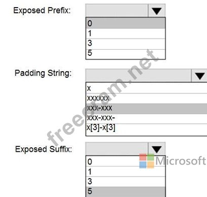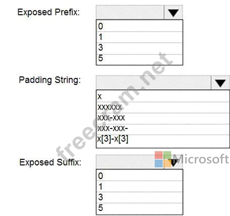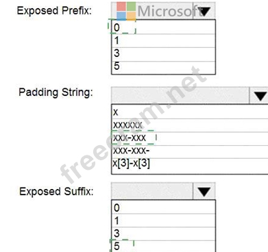 How should you configure the dynamic data mask? To answer, select the appropriate options in the answer area.