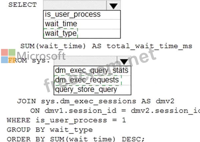 How should you complete the Transact-SQL query? To answer, select the appropriate options in the answer area.