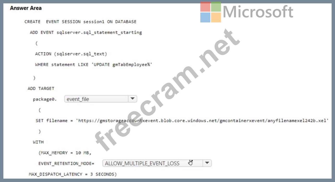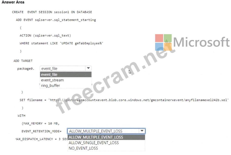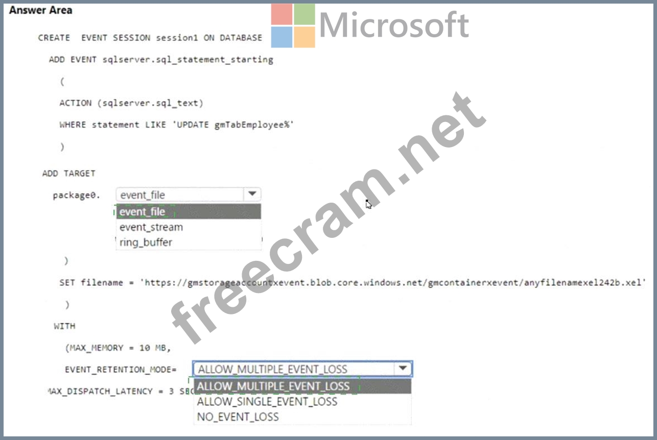 How should you complete the Transact-SQL statement? To answer, select the appropriate options in the answer area.