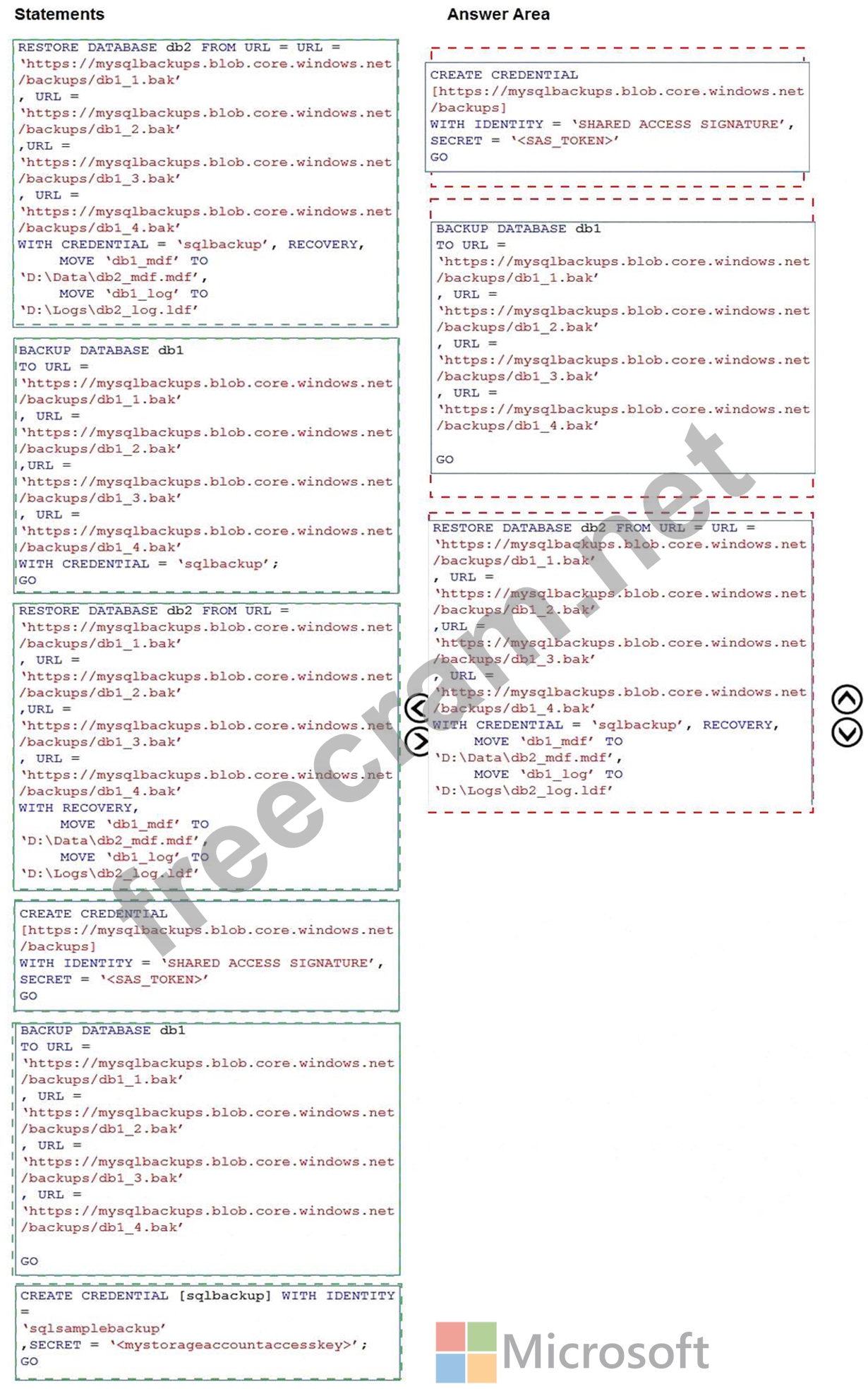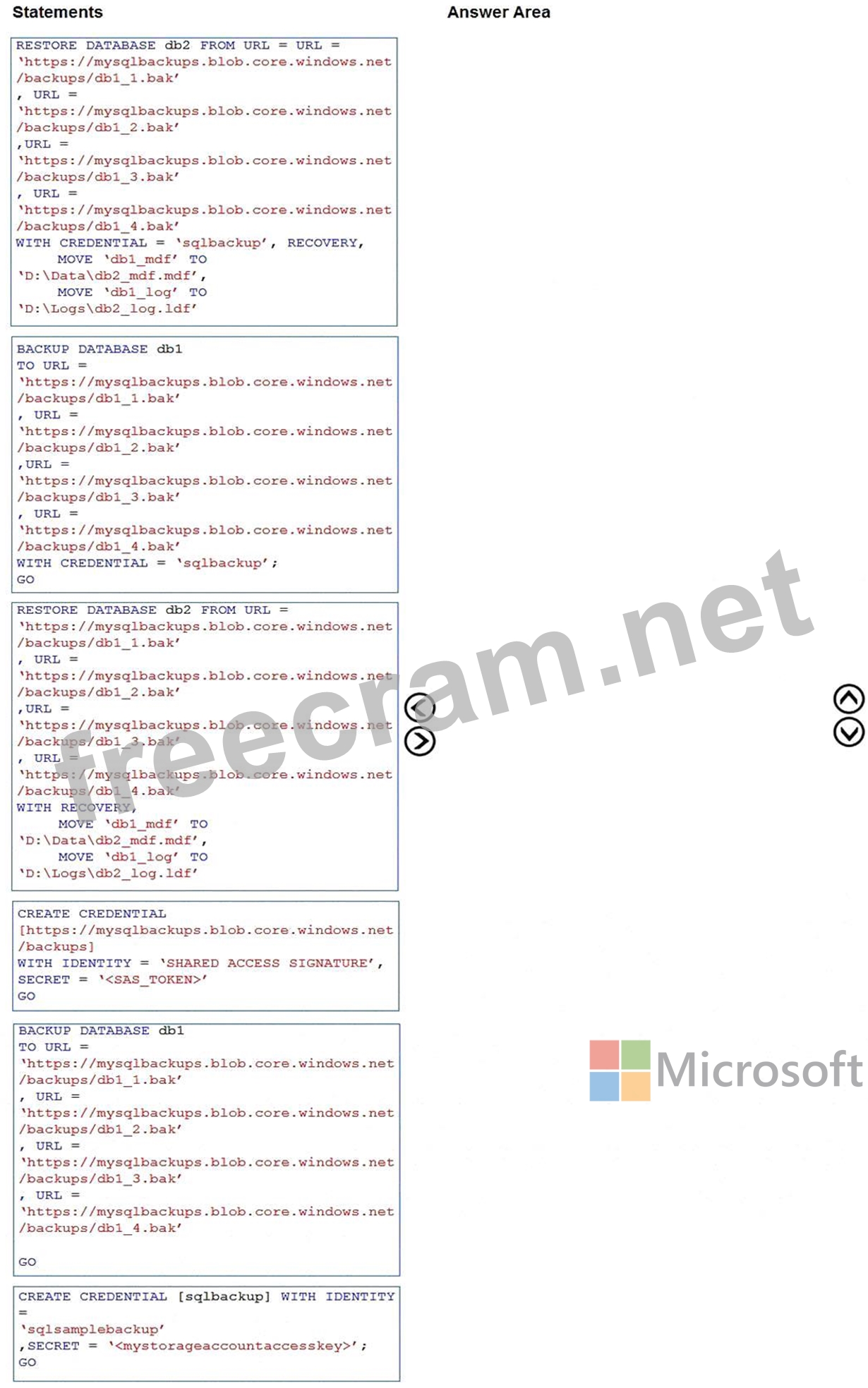 Which three Transact-SQL statements should you execute in sequence? To answer, move the appropriate statements from the list of statements to the answer area and arrange them in the correct order.