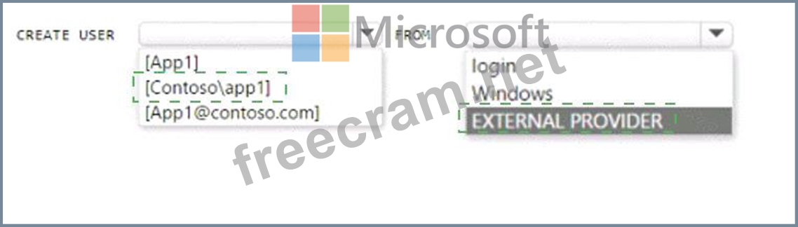 You have an Azure subscription that is linked to an Azure AD tenant named contoso.com. The subscription contains an Azure SQL database named SQL 1 and an Azure web named app1. App1 has the managed identity feature enabled.