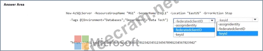 You need to deploy a logical SQL server by using PowerShell. The solution must ensure that the logical SQL server can create Azure AD users and provide Transparent Data Encryption (TDE} with a customer-managed key.
