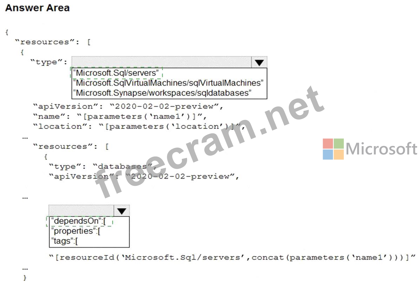 Question 44: You have the following Azure Resource Manager template. (Exh...