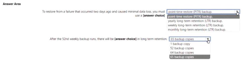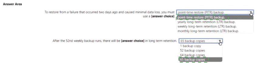Question 125: You configure backups for an Azure SQL database as shown in ...