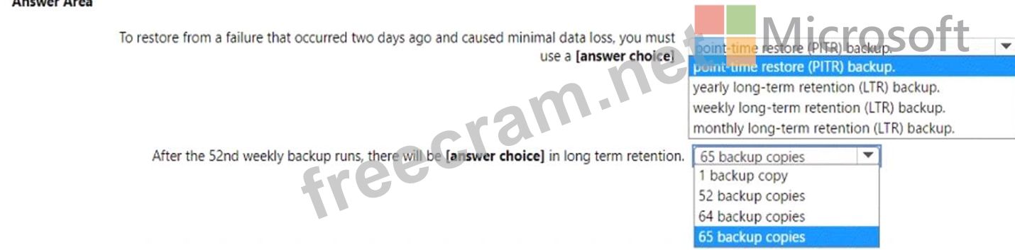 Question 125: You configure backups for an Azure SQL database as shown in ...