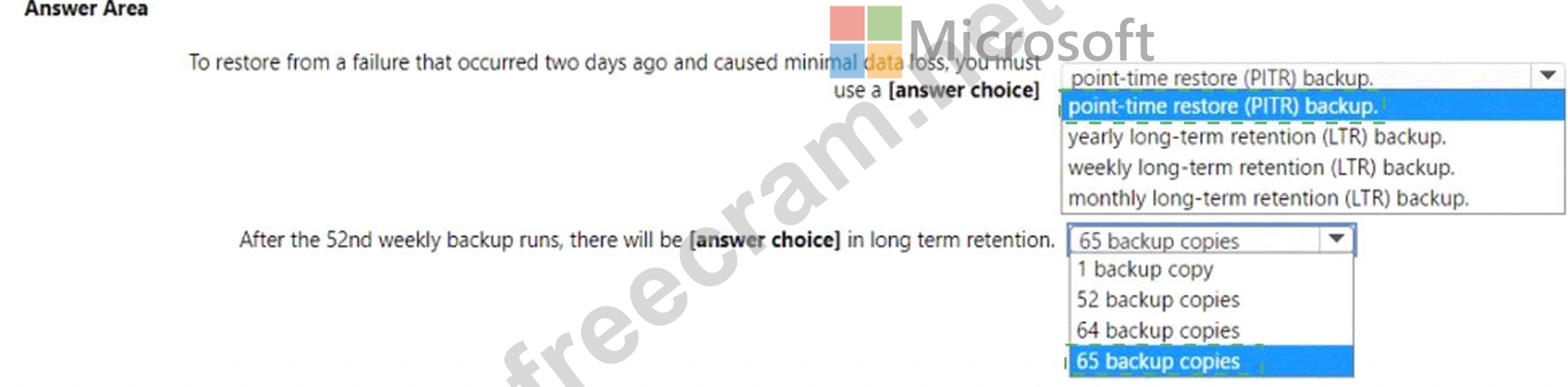 Question 14: You configure backup for an Azure SQL database as shown in t...