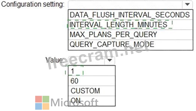 Which configuration setting should you modify and which value should you configure? To answer, select the appropriate options in the answer area.