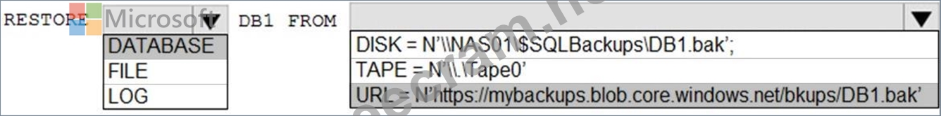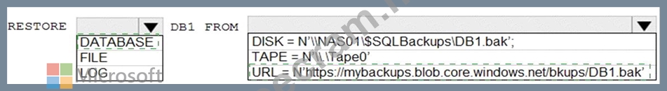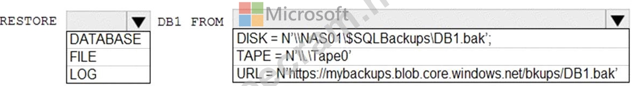 You need to restore a database named DB1 by using Transact-SQL.