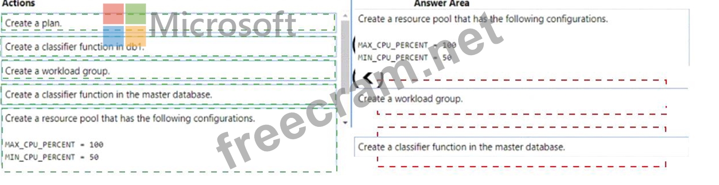 Which three actions should you perform in sequence? To answer. move the appropriate actions from the list of actions to the answer area and arrange them in the correct order NOTE: More than one order of answer choices is correct. You will receive credit for any of the correct orders you select.