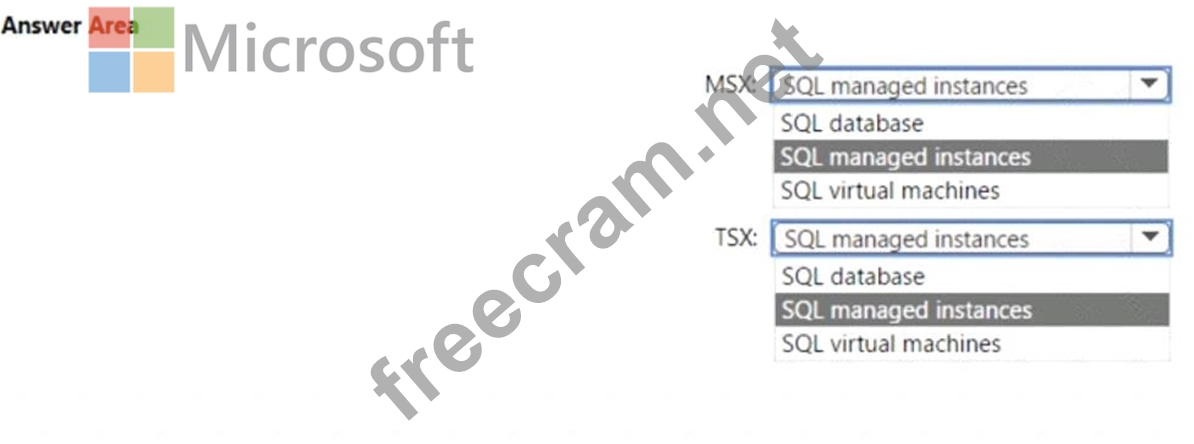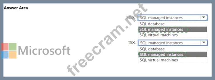 Which SQL deployment options should you select as the master server (MSX) and the target server (TSX)? To answer, select the appropriate options in the answer area.