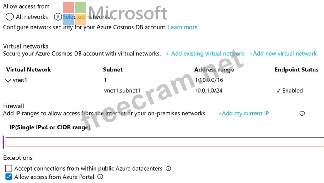 The Firewall and virtual network settings for account1 are configured as shown in the exhibit.
