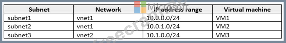 The vnet1 and vnet2 networks are connected by using a virtual network peer.
