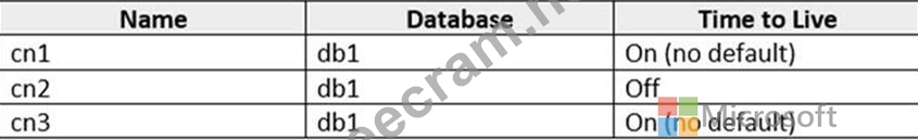 You have three containers in an Azure Cosmos DB Core (SQL) API account as shown in the following table.