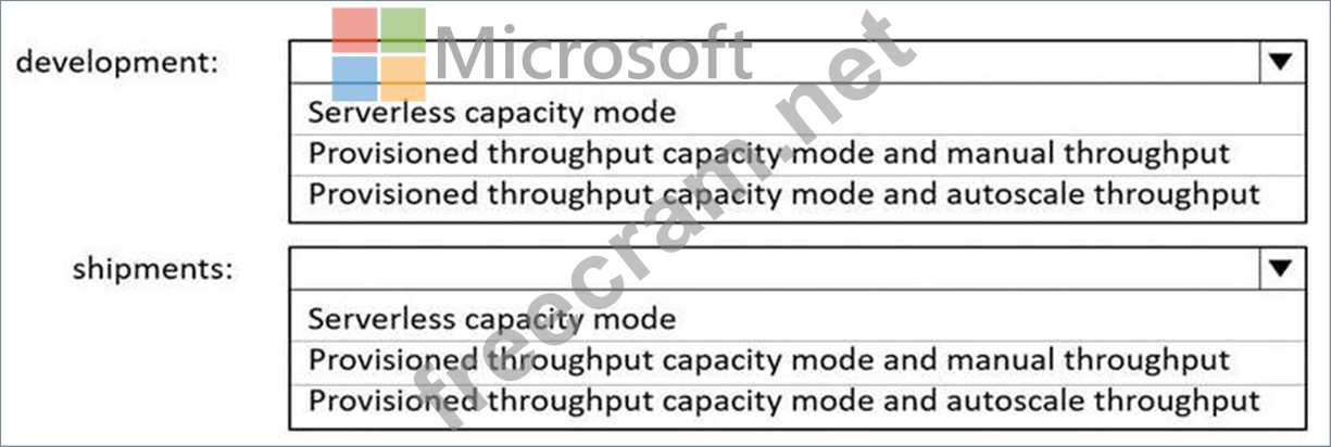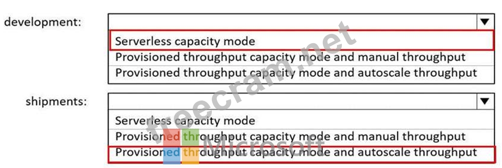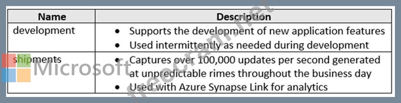 You plan to deploy two Azure Cosmos DB Core (SQL) API accounts that will each contain a single database. The accounts will be configured as shown in the following table. How should you provision the containers within each account to minimize costs? To answer, select the appropriate options in the answer area. NOTE: Each correct selection is worth one point.