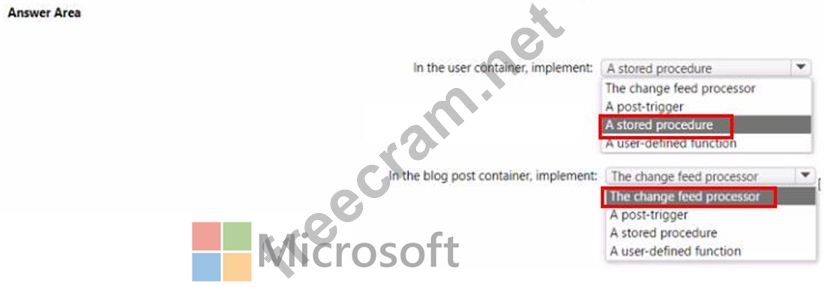 You plan to create an Azure Cosmos DB database named db1 that will contain two containers. One of the containers will contain blog posts, and the other will contain users. Each item in the blog post container will include: