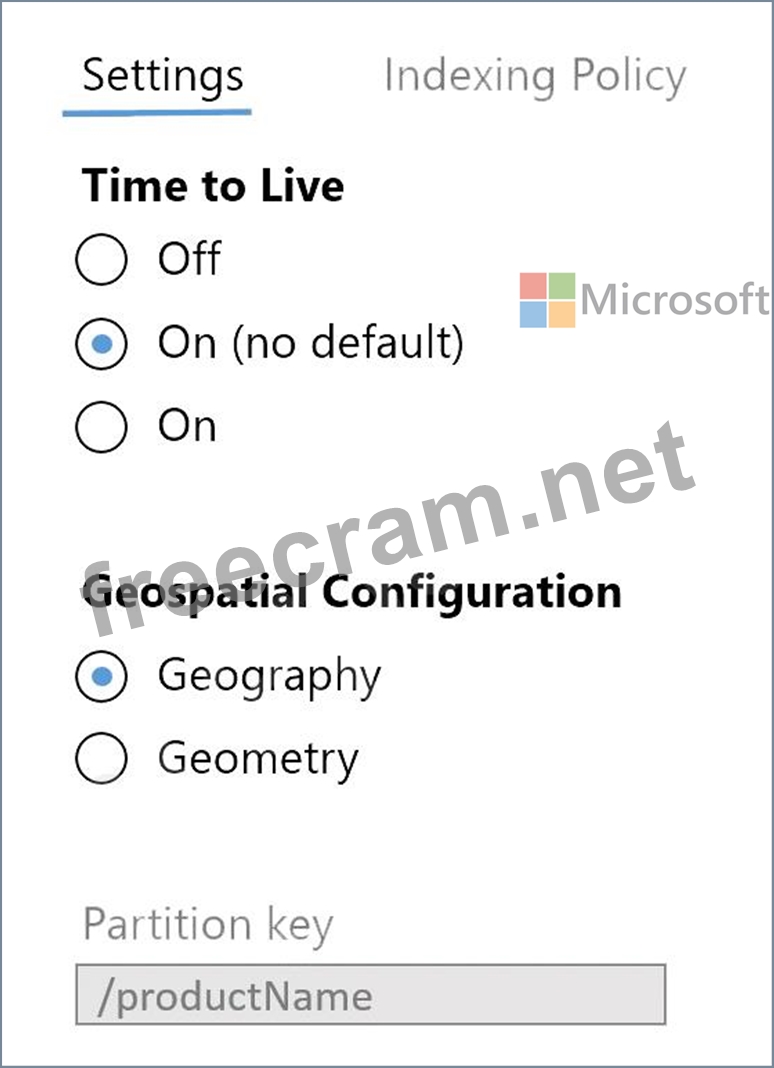 The settings for a container in an Azure Cosmos DB Core (SQL) API account are configured as shown in the following exhibit. Which statement describes the configuration of the container?
