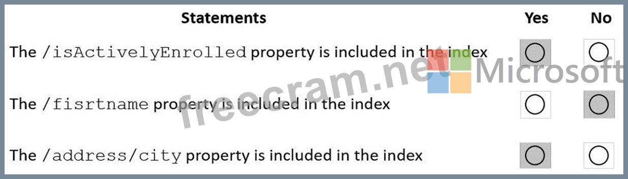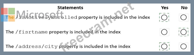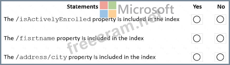 Reference: https://docs.microsoft.com/en-us/azure/cosmos-db/index-policy