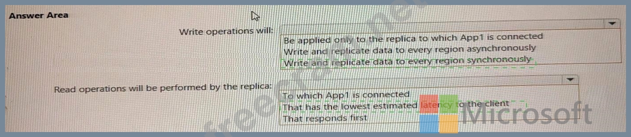 How will the read and write operations of App1 be handled? To answer, select the appropriate options in the answer area.