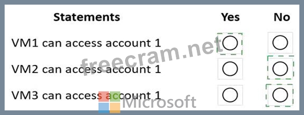 The Firewall and virtual network settings for account1 are configured as shown in the exhibit.