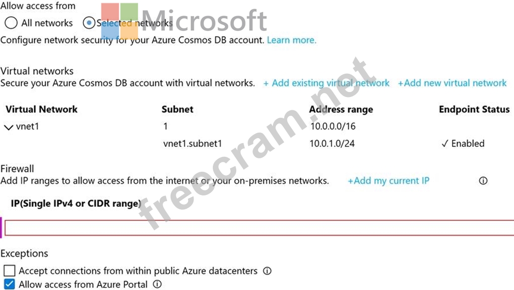 Only virtual network and their subnets added to Azure Cosmos account have access.