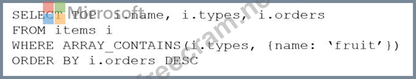 Question 17: You have a container m an Azure Cosmos DB for NoSQL account....