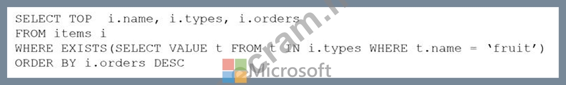 Question 26: You have a container named container! in an Azure Cosmos DB ...
