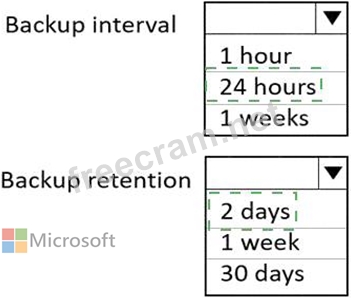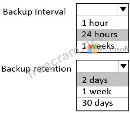 How should you configure the backup settings? To answer, select the appropriate options in the answer area.