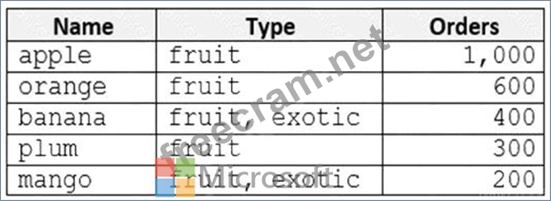 You need to create a report that displays the top five most ordered fruits as shown in the following table.