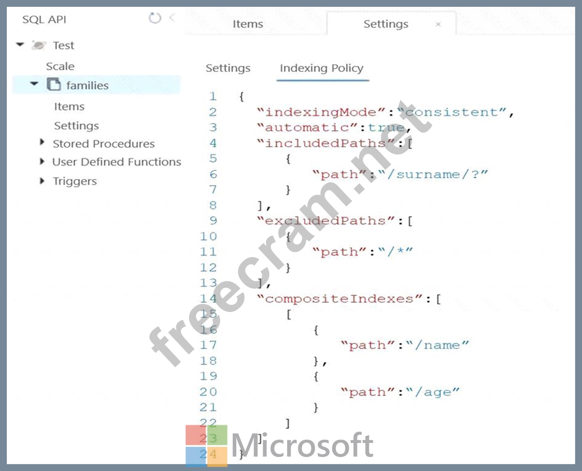 Reference: https://docs.microsoft.com/en-us/azure/cosmos-db/index-policy
