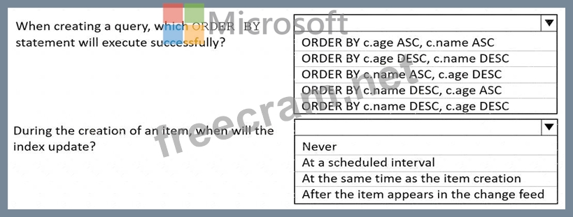 Box 1: ORDER BY c.name DESC, c.age DESC