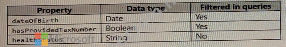 For healthStatus, deterministic encryption is the strongest type of encryption because it allows queries to perform equality comparisons and filters on the encrypted property. Randomized encryption would not be suitable for healthStatus because it would prevent any queries on the encrypted property1.