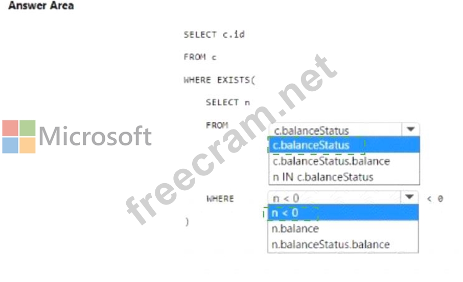 Question 13: You have an application that queries an Azure Cosmos 06 for ...