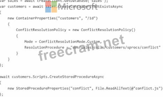 Question 46: You are creating a database in an Azure Cosmos DB Core (SQL)...