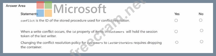 Vou have an Azure subscription. The subscription contains an Azure Cosmos DB for NoSQL account named account1 that hosts a container named Customers. Multi-region writes are allowed.