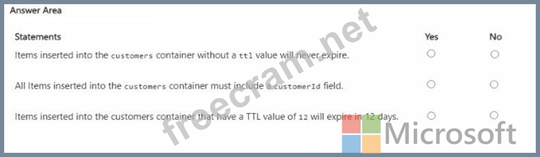 Question 3: You have a container in an Azure Cosmos DB Core (SQL) API ac...