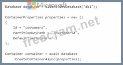 Question 46: You are creating a database in an Azure Cosmos DB Core (SQL)...