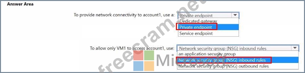 You have an Azure subscription that contains an Azure Cosmos DB account named account1 and an Azure virtual network named VNet1. VNet1 contains two virtual machines named VM1 and VM2. VNet1 is connected to the on-premises network by using a Site-to-Site (S2S) VPN.
