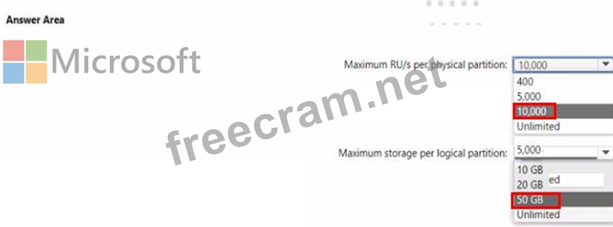 Question 38: The settings for a container in an Azure Cosmos DB Core (SQL...