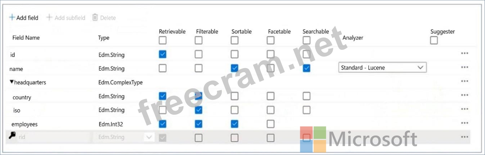 You configure Azure Cognitive Search to index a container in an Azure Cosmos DB Core (SQL) API account as shown in the following exhibit.