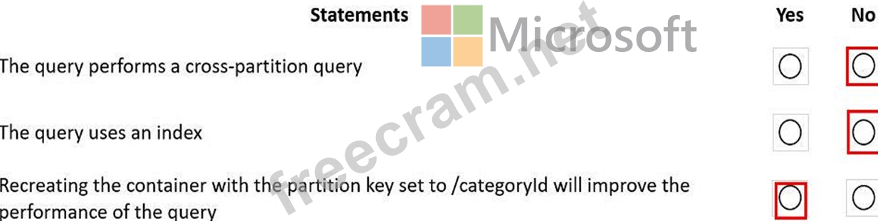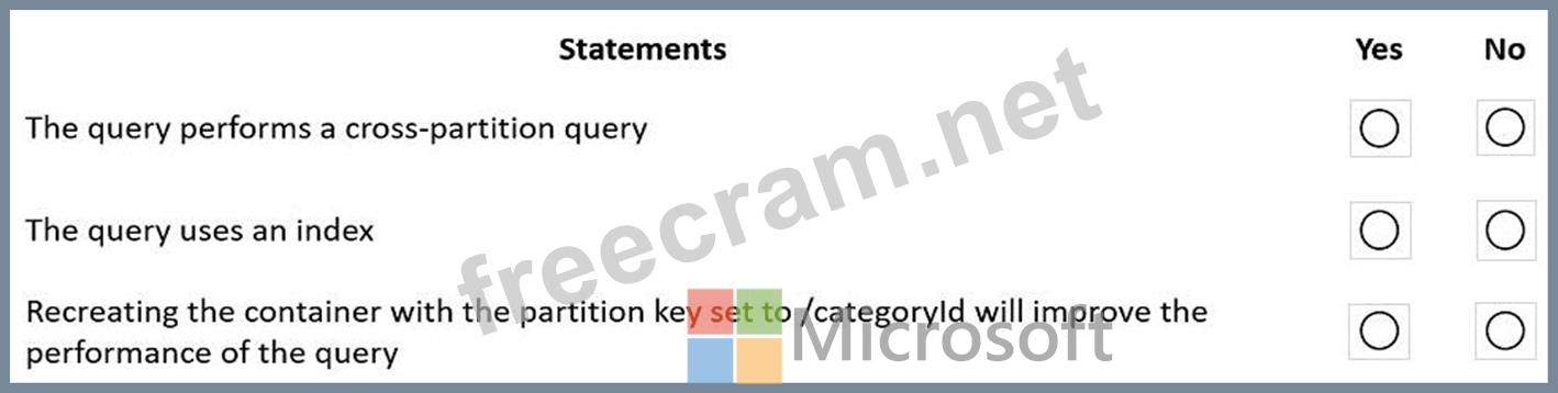 Question 36: You have a container m an Azure Cosmos DB for NoSQL account....