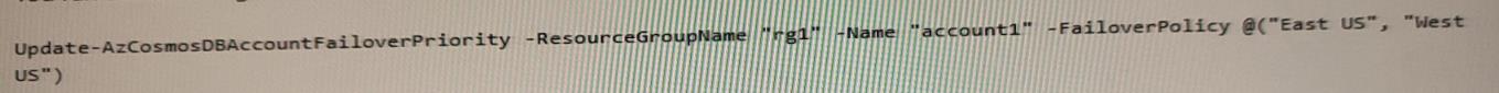 You have an Azure Cosmos DB for NoSQL account1 that is configured for automatic failover. The account1 account has a single read-write region in West US and a and a read region in East US. You run the following PowerShell command. What is the effect of running the command?