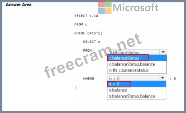 Question 36: You have a container m an Azure Cosmos DB for NoSQL account....