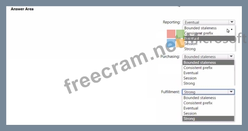 Which consistency level should you configure for each application? To answer, select the appropriate options in the answer are a. NOTE: Each correct selection is worth one point.