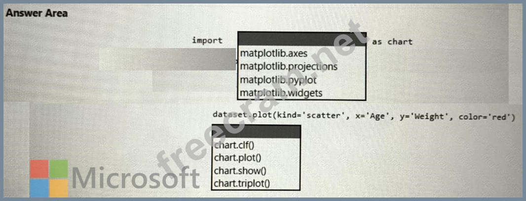 How should you complete the Python code? To answer, select the appropriate options in the answer area.