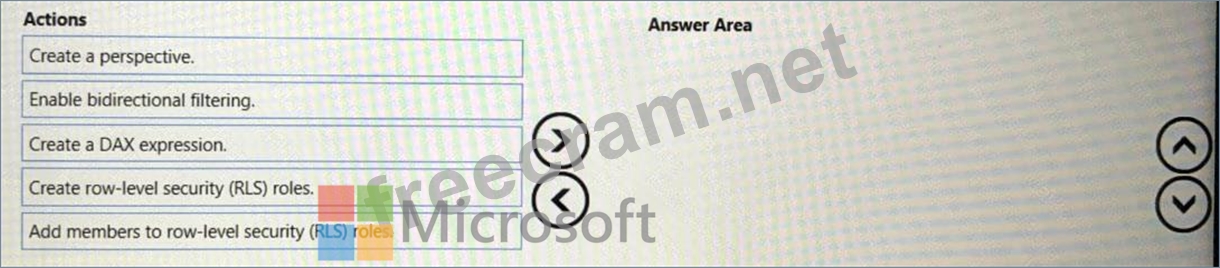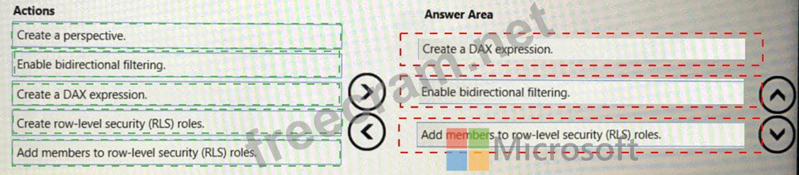 You need to create Power Bl reports that will display data based on the customers' subscription level. Which three actions should you perform in sequence? To answer, move the appropriate actions from the list of actions to the answer area and arrange them in the correct order.