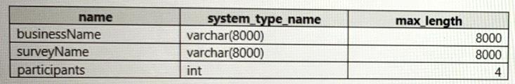 Solution: You recommend using OPENROWSET WITH to explicitly specify the maximum length for businessName and surveyName.