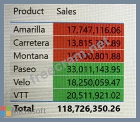 Question 82: You have a Power Bl report that contains the table shown in ...