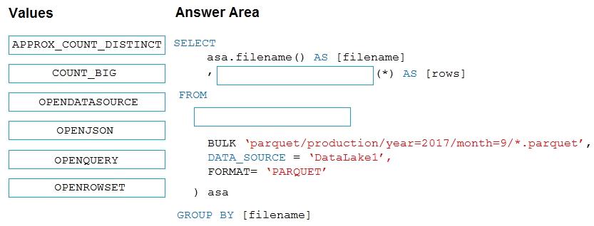 How should you complete the Transact-SQL statement? To answer, drag the appropriate values to the targets. Each value may be used once, more than once, or not at all. You may need to drag the split bar between panes or scroll to view content.