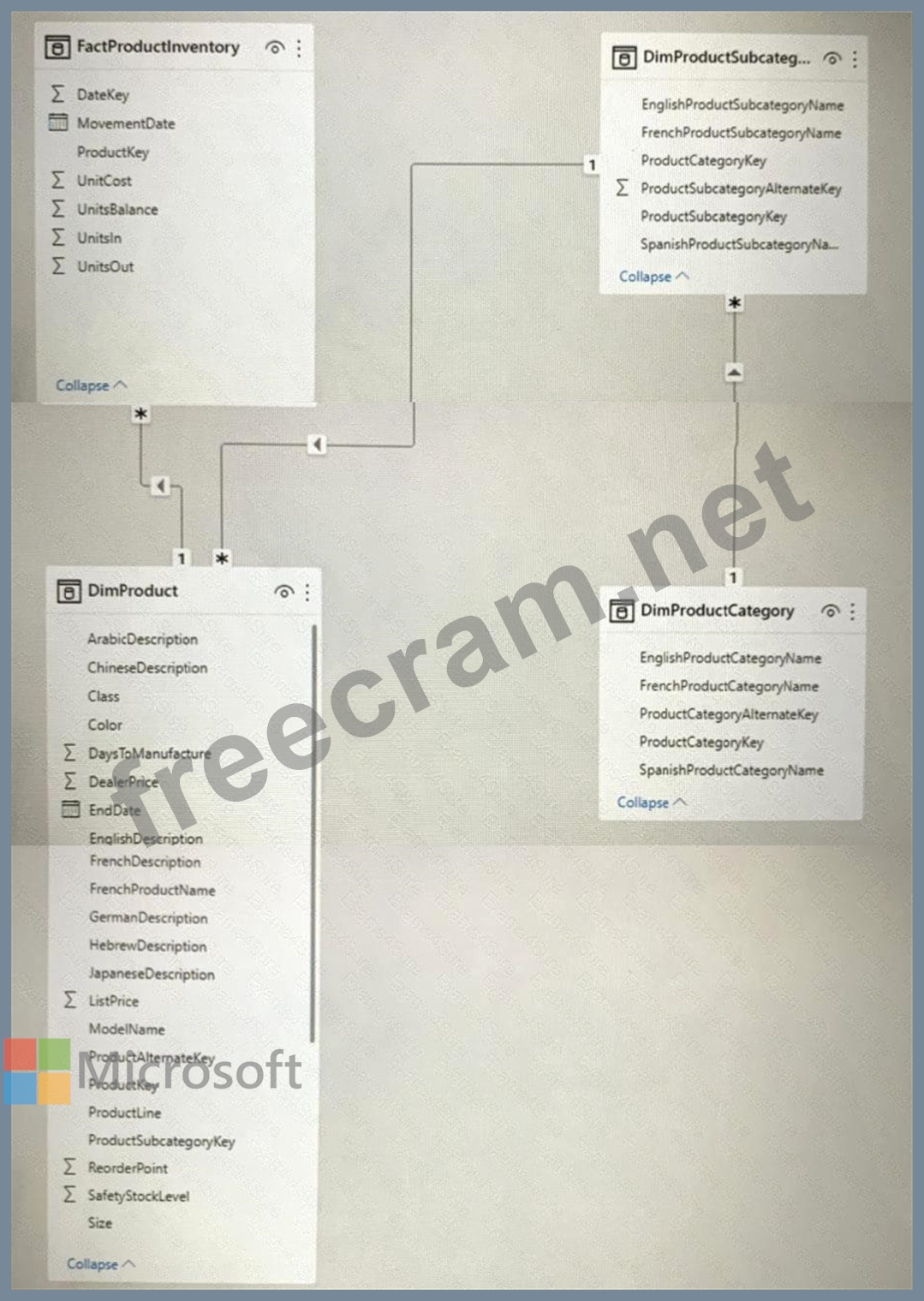 You have the Power Bl data model shown in the exhibit. (Click the Exhibit tab.)