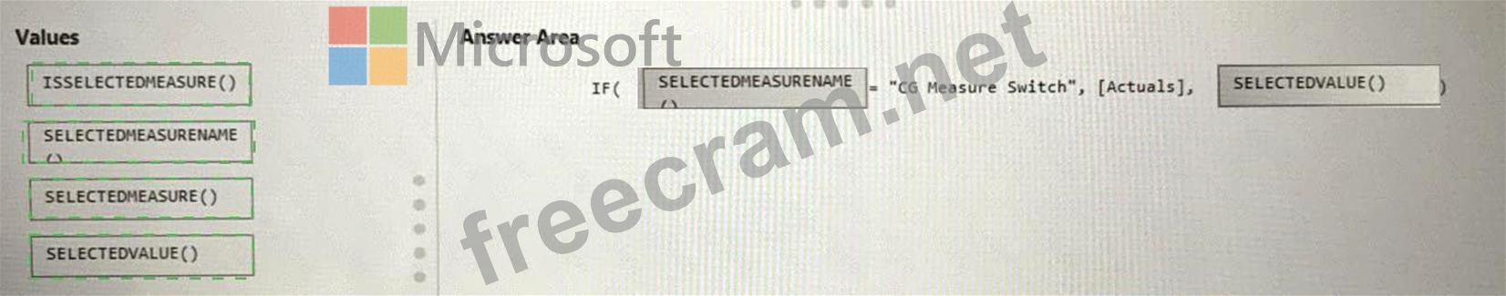 SELECTEDMEASURENAME is used by expressions for calculation items to determine the measure that is in context by name.